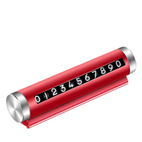Червона парковочна табличка для авто — практичне рішення для паркування: номер телефону завжди на виду. Це алюмінієва табличка для авто з матовим покриттям і пластиковими елементами, оснащена роликовим механізмом змінних цифр без наклейок. Автомобільна табличка з номером кріпиться на 3M двосторонній скотч, тримається надійно та знімається без слідів.