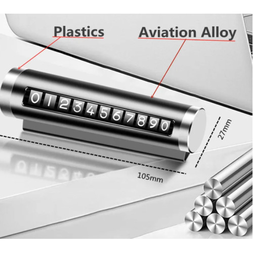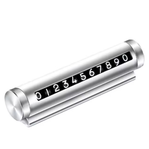Алюмінієва табличка для паркування створена як практичний аксесуар для салону авто: цифри задаються обертанням роликів, а табличка на двосторонній скотч тримається на склі під час поїздок і стоянок.