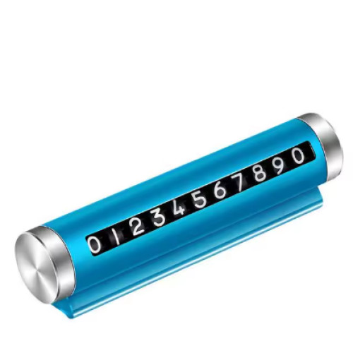 Синя парковочна табличка для авто — акуратне рішення для тимчасової парковки. Це табличка з номером телефону для авто з алюмінієвим корпусом і матовим покриттям; алюмінієва табличка для автомобіля виглядає стримано та сучасно. Роликовий механізм дозволяє швидко виставити змінні цифри й показати номер телефону під лобове скло — без наклейок і зайвого клопоту. Компактний формат 10.5×2.7 см не закриває огляд і пасує до будь-якого салону.