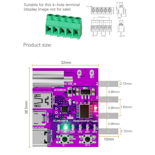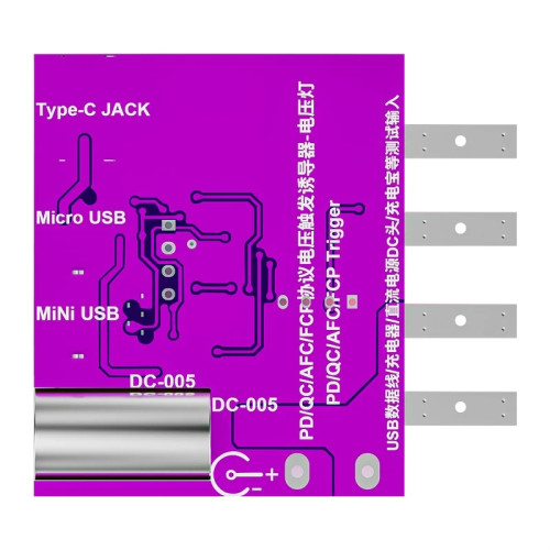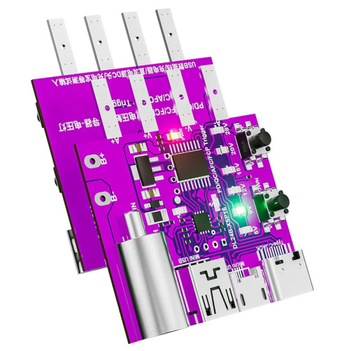 Компактна плата для тестування зарядних пристроїв з підтримкою USB Type-C PD3.1 дозволяє швидко перевіряти вихідні режими та стабільність живлення. Як тестер PD3.1 і плата тригер PD, пристрій фіксує потрібну напругу, що спрощує тестування повербанків і адаптерів живлення під реальне навантаження.