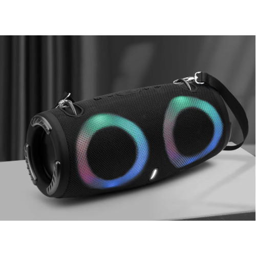 Портативна Bluetooth-колонка 100 Вт створена для гучних вечірок, поїздок і домашніх посиденьок. Це стерео колонка 360 із яскравою RGB-підсвіткою, підтримкою TWS для пари колонок, FM-радіо, відтворенням із USB та TF, а також проводовим підключенням через AUX. Компактний корпус 30×12×12 см у чорному кольорі виконано з ABS-пластику та тканинного покриття із приємним soft-touch.