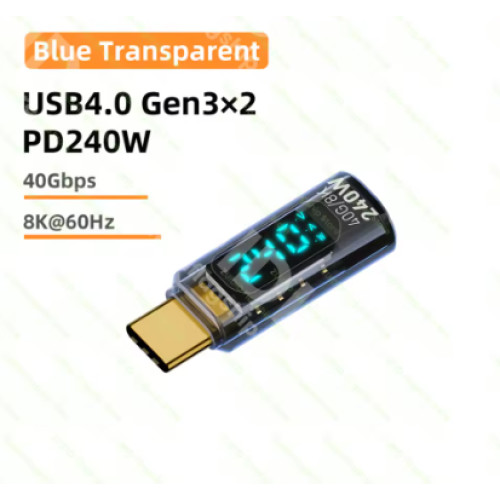 Повнофункціональний адаптер типу C «тато» — «мама» типу C, 240 Вт, з цифровим дисплеєм (прозорий чорний)