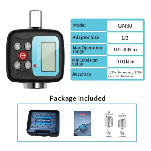 Електронний динамометричний ключ із діапазоном 0,9–30 Нм створений для точного контролю зусилля під час збирання та обслуговування. Він однаково зручний як динамометричний ключ для авто, так і як ключ динамометричний для велосипеда, забезпечуючи акуратну і повторювану затяжку без перетягування різьблення. Якщо шукаєте точний динамометричний ключ для щоденної роботи або майстерні — це надійне рішення.
