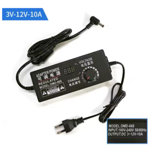 Регульований блок живлення AC/DC — універсальний адаптер для LED, контролерів і малих двигунів. Підтримує регулювання напруги у діапазоні 3–12В (у лінійці доступні моделі 1–36В), працює від мережі 100–240В 50/60 Гц і підходить як надійне джерело живлення для електроніки вдома та в майстерні.