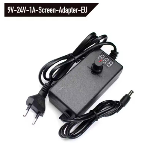 Регульований блок живлення AC/DC 9–24В 1А — надійне рішення для LED-стрічок, контролерів, невеликих двигунів та електронних модулів. Плавне налаштування вихідної напруги допомагає точно підібрати живлення під конкретне завдання, а стандартний штекер 5.5×2.5 мм спрощує підключення у більшості проєктів.