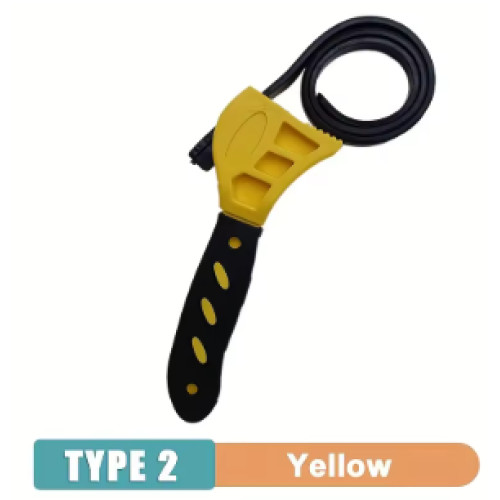 Ремінний ключ 6 дюймів у жовтому кольорі — універсальний помічник для робіт із круглими деталями, кришками та кріпленнями. Регульована петля дбайливо охоплює поверхні без подряпин, тож інструмент ідеальний як пасовий ключ для фільтра та надійний інструмент для гайок у побуті й майстерні.