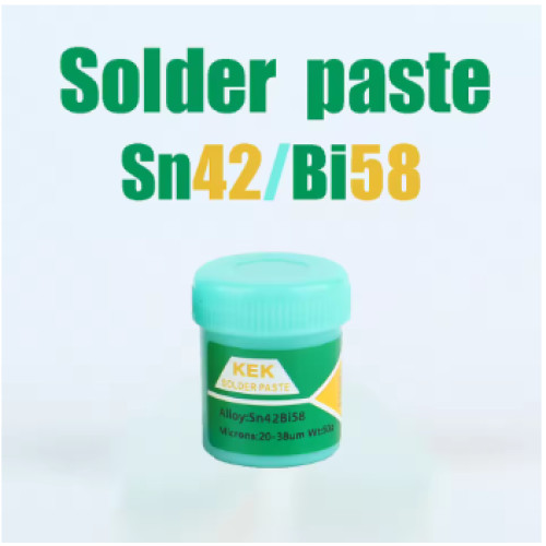 - Sn42Bi58 — 42% олова, 58% вісмуту; температура плавлення 138°C (низькотемпературна паяльна паста, олово-вісмутна паяльна паста).
