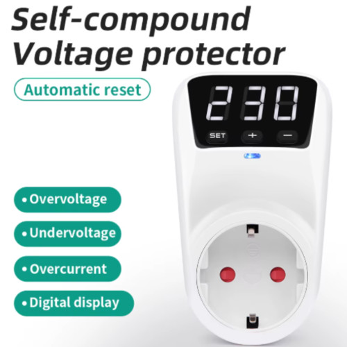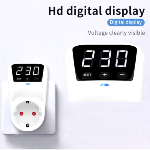 Розетка з регульованим обмеженням напруги 16 А — надійний обмежувач напруги для побутових приладів. Ця розетка з захистом від перепадів напруги контролює мережу 230 В ~ 50 Гц і відключає живлення, коли параметри виходять за встановлені межі, запобігаючи пошкодженню техніки.