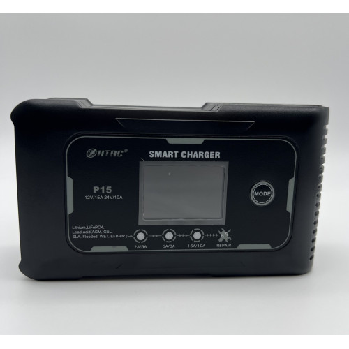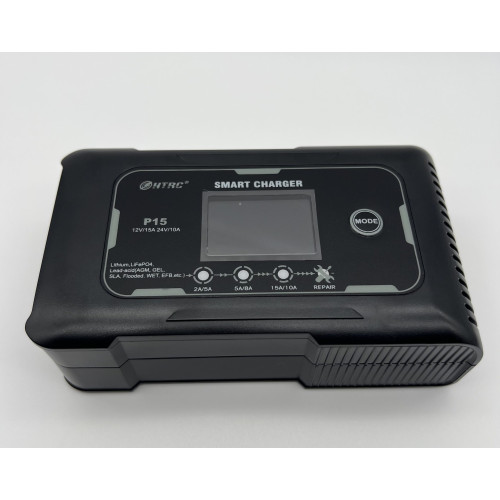 Розумний зарядний пристрій 15А з РК-дисплеєм для 12В/24В — універсальна зарядка для акумулятора автомобіля, мотоцикла та іншої техніки. Пристрій підтримує інтелектуальну зарядку АКБ і підходить для AGM, GEL, LiFePO4, Li-ion, а також свинцевих АКБ (SLA, VRLA, EFB, WET).