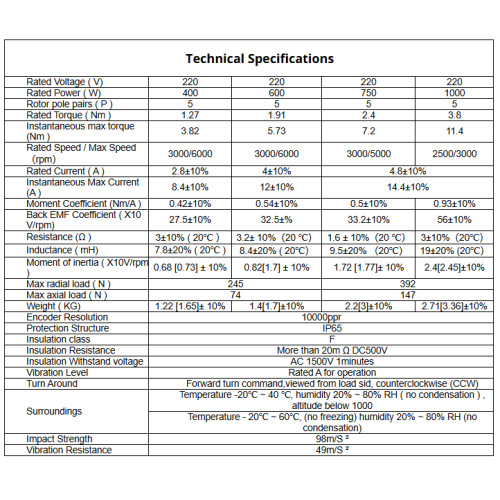 - Номінальна/максимальна швидкість: 3000/6000 об/хв; момент: 1.27/3.82 Нм для швидкого та точного позиціонування.