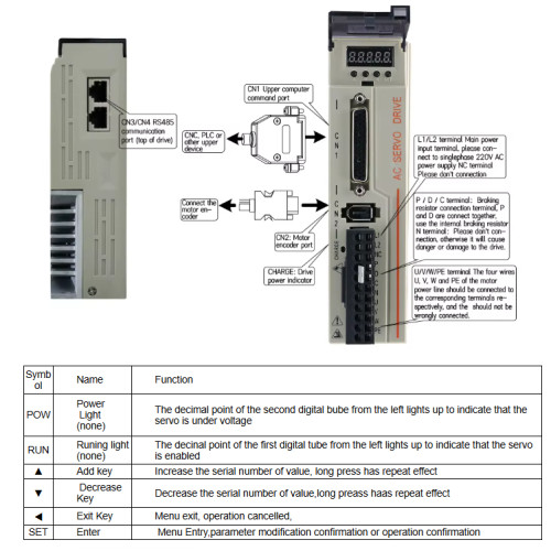 - Підтримка ЧПК і ПЛК; серводрайв комплект сприймає імпульси 5/24V. Для 24V використовуйте два резистори 2K 1/4W послідовно між P+ та D+.