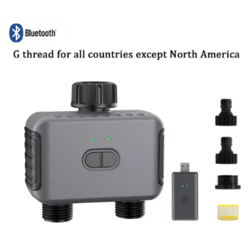 Як wifi таймер поливу, модель підтримує до 20 індивідуальних програм (по 10 на зону), роботу за розкладом або в циклічному режимі, паузу через дощ тривалістю 1–7 днів і зручний ручний полив. Завдяки класу захисту IPX5 і живленню від 2×AA пристрій працює автономно понад пів року. Для стабільного зв’язку використовується хаб (2.4 ГГц), а радіус Bluetooth до нього — до 15 м без перешкод. Це практичний таймер поливу з хабом і надійний контролер поливу wifi для щоденних задач.