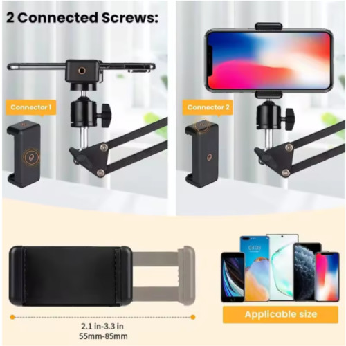 Підійде для блогів, стрімів, відеодзвінків, оглядів товарів та макрозйомки. Штатив для відеозйомки і штатив для стріму забезпечують стабільний кадр, а гнучка рука дозволяє швидко змінювати ракурс без тряски.