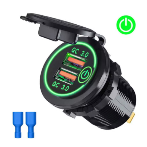 Dual USB QC 3.0 — це водонепроникна USB розетка в авто, що поєднує швидку зарядку та зручність щоденного користування. Працює від 12–24 В, оснащена вбудованим вимикачем і LED‑індикатором стану, тож ідеально підходить для легкового авто, мотоцикла, квадроцикла чи човна.