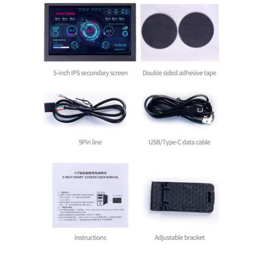 Компактний смарт IPS‑монітор 5″ із роздільною здатністю 800×480 під’єднується одним кабелем USB Type‑C та може слугувати як додатковий екран для ПК або як основний у мінімалістичному робочому місці. Чорний корпус, чітка матриця та зручний форм‑фактор роблять його практичним рішенням як для настільного використання, так і для вбудування в корпус ПК.