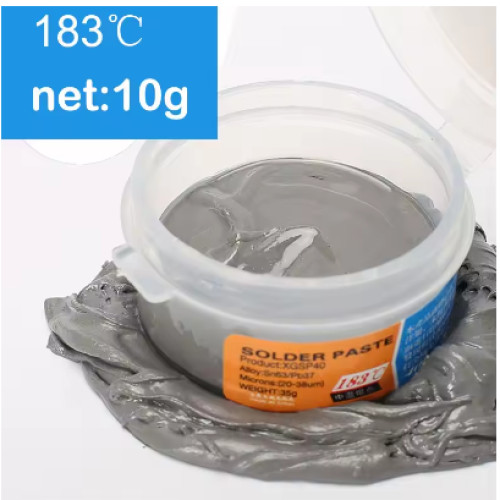 Тип на сторінці: 10 г, 183°C — компактна паяльна паста 10 г для дрібних ремонтів і монтажу плат, зручна як паста для PCB та робіт з IC.