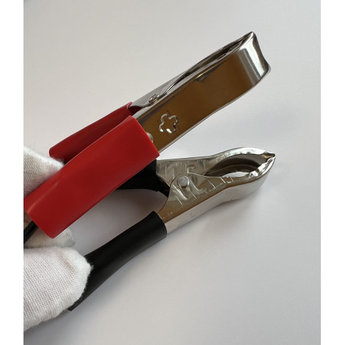 ► Червоний затискач — до «+» акумулятора, чорний — до «−».