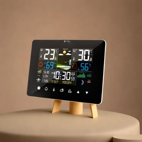 Це метеостанція з прогнозом погоди, яка поєднує можливості термометр гігрометр станція та працює як цифровий барометр для дому, допомагаючи підтримувати комфорт і планувати справи.