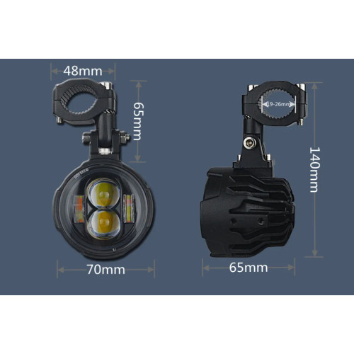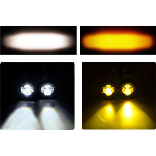 Двоколірні світлодіодні фари 100W створені як надійні допоміжні фари для мотоцикла: жовте ближнє і біле дальнє світло забезпечують впевнену видимість уночі, в туман та дощ. Вони обладнані універсальним живленням 12–24V і герметичним алюмінієвим корпусом, розраховані на щоденну експлуатацію на дорозі й поза нею.