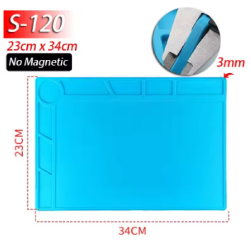 Призначення: килимок для ремонту електроніки, зокрема телефонів, ноутбуків, годинників, плат і модулів. Підійде як робочий мат для паяння на домашньому столі або як килимок для паяльної станції у сервісі. Для завдань із розбирання зручно використовувати його як килимок для розбирання телефонів. Якщо потрібна фіксація металевих дрібниць магнітами — обирайте моделі з магнітними зонами (S-120 їх не має).
