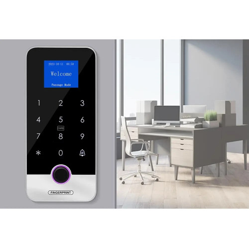 Застосування: офіси, приватні будинки, склади та інші об'єкти, де потрібна надійна система контролю доступу. Пристрій працює як автономний контролер дверей, підтримує введення пароля через екранну клавіатуру і карту RFID (клавіатура і карта rfid), а також швидку ідентифікацію відбитком. Завдяки мобільному застосунку зручно керувати правами, відслідковувати журнал подій доступу та виконувати віддалене відкривання.