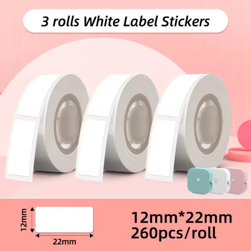 Матеріал — білий папір для етикеток з підвищеною стійкістю: це водостійкі етикетки і маслостійкі етикетки, також захищені від стирання під час щоденного використання. Розмір етикетки 12×22 мм підходить для коротких позначень та інвентарних номерів; доступні варіанти 12×30 і 12×40 мм для більших підписів.