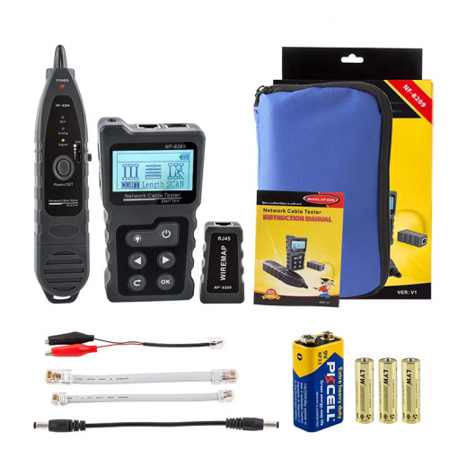 Під час обслуговування мереж NF-8209 працює як детектор обриву кабелю та спрощує тестування Ethernet кабелів у патч-панелях і комутаторах. Завдяки зрозумілому РК-дисплею та підтримці навушників прилад зручний у шумних умовах, а чохол у комплекті полегшує транспортування.