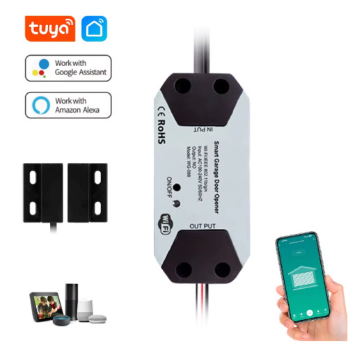 Tuya WiFi смарт‑контролер для гаражних воріт — надійне рішення для автоматизації відкривання та закривання. Це розумний контролер для гаражних воріт, який дозволяє керувати приводом віддалено через застосунки Tuya Smart або Smart Life. Підходить для сценаріїв, де потрібні автоматизація гаражних воріт і швидке відкривання гаражних воріт з телефона без натискання фізичних кнопок.
