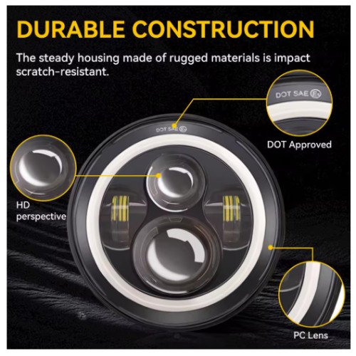 Сумісність: підходить для транспортних засобів із круглою 7" фарою та роз'ємом H4. Якщо у вашому авто або мотоциклі використовується саме такий стандарт, фара стане відмінною заміною штатного освітлення.