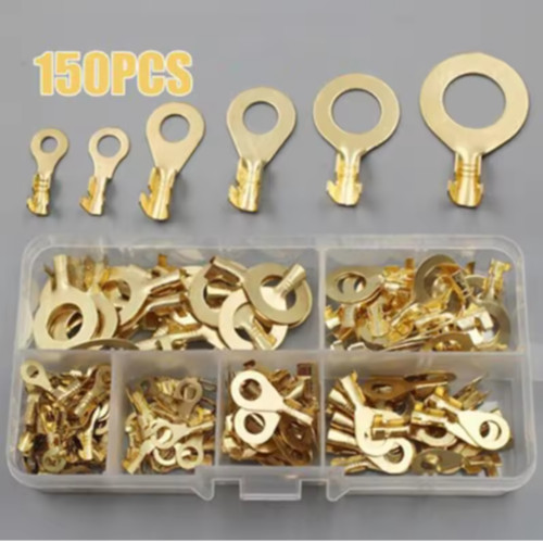 Надійні кільцеві термінали DJ431 для швидкого та чистого підключення проводів у побуті, автоелектриці й на виробництві. Набір клем 150 штук охоплює основні діаметри та дозволяє виконувати електромонтаж без зайвих витрат часу.