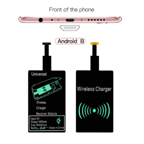 Універсальний ресивер Qi micro usb type a — приймач бездротової зарядки micro usb, який додає підтримку стандарту Qi смартфонам без вбудованої індукції. Тонкий модуль qi під чохол легко встановити під кришку або бампер і не заважає користуванню. Так ви отримаєте бездротову зарядку для смартфона micro usb без заміни пристрою.