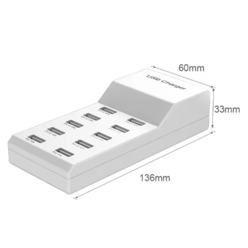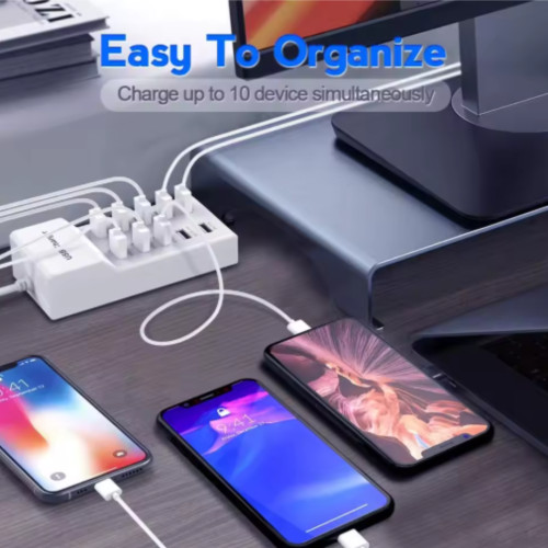 USB-зарядна станція (10-портова) 50 Вт для кількох пристроїв – універсальний адаптер для iPhone, Samsung, Xiaomi, Huawei та інших