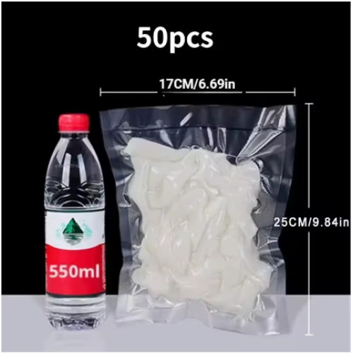 Комплект харчових вакуумних пакетів 17×25 см (50 шт) створений для щоденного герметичного пакування їжі вдома та на роботі. Багатошаровий PA+PE і рифлена внутрішня текстура прискорюють відкачування повітря та допомагають зберегти свіжість, смак і аромат продуктів.