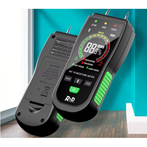 Вологомір деревини MT19С — це цифровий вологомір для оперативного та точного контролю вологи у деревині й будівельних матеріалах. Прилад працює за принципом вимірювання електричного опору, має зручний LCD‑дисплей з підсвіткою та знімні електроди. Підійде як вимірювач вологості дерева майстрам і столярам, так і як вологомір для будівельних матеріалів на об'єктах.
