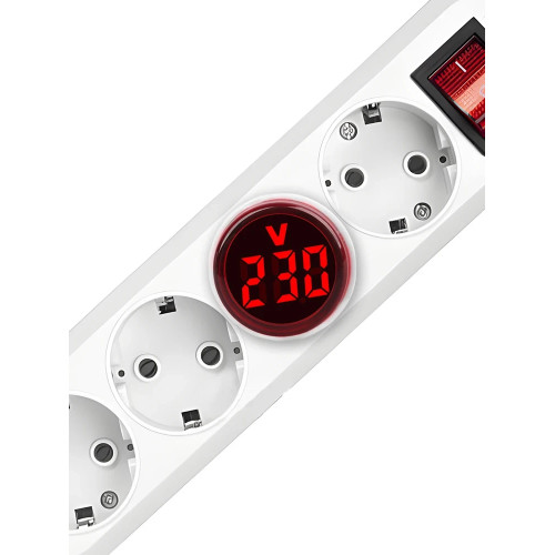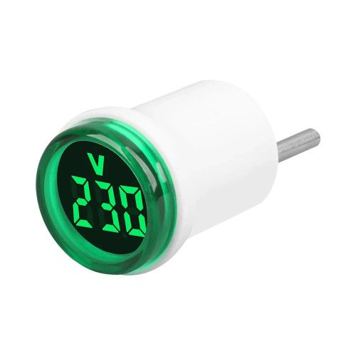 Застосування: оперативний контроль напруги в розетках, на робочих місцях, у майстернях і щитах. LED вольтметр змінної напруги зручний як індикатор напруги розетки та як прилад для вимірювання напруги під час налаштування або діагностики мережі. Зелений дисплей чітко відображає значення навіть на відстані.