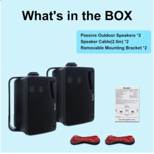 Пара настінних пасивних колонок Herdio 3.5'' розрахована на стабільну роботу на відкритому повітрі та в кімнатах. Це компактні вуличні пасивні колонки з 3-смуговою схемою, що дають збалансовані високі, виразні середні та приємно підкреслений бас. Вологостійкий корпус із ABS дозволяє використовувати систему на терасі, біля басейну чи в гаражі без страху перед бризками та пилом. Такі колонки для вулиці і приміщень доречні для фону, оголошень і музики.