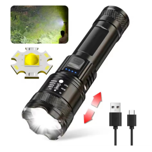 Світлодіодний зум-ліхтарик P200 поєднує потужність до 2000 лм, підсвітку дисплея та зручну USB-зарядку. Компактний і надійний, цей тактичний ліхтарик стане корисним вдома, у подорожах, на риболовлі та під час кемпінгу.