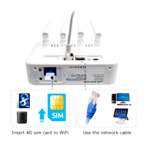 Завдяки слоту для SIM 4G (маршрутизатор з sim слотом) пристрій працює там, де немає проводового інтернету. Підключайте до 10 гаджетів одночасно — 4g lte wi-fi для кількох пристроїв без відчутних втрат якості. Чотири антени покращують зону покриття і стабільність сигналу, тому 4g wi-fi роутер з антенами підходить для квартири, офісу та поїздок.