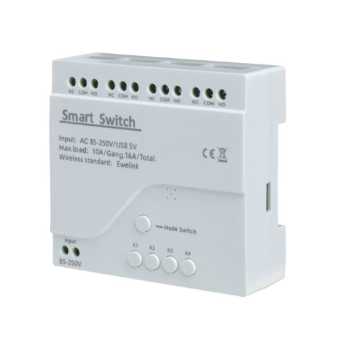 4‑канальне Wi‑Fi реле 220V для дистанційного керування електроприладами через додаток eWeLink. Це бездротове реле 220В ідеально підходить для розумного дому: освітлення, штори, ворота, насоси, кавоварки тощо. Працює лише з Wi‑Fi 2.4GHz, без підтримки RF (433MHz).