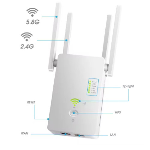 Дводіапазонний wi-fi репітер 1200mbps з 4 зовнішніми антенами створений для стабільного інтернету без «мертвих зон». Цей ретранслятор wi-fi з 4 антенами працює як підсилювач сигналу wi-fi для дому та офісу, розширюючи покриття приблизно до 460 м² і підтримуючи до 35 пристроїв одночасно у діапазонах 2.4 ГГц і 5 ГГц.