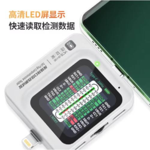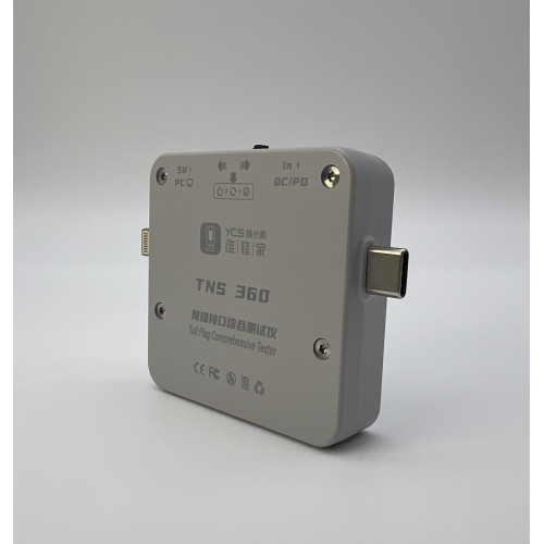 YCS TNS360 — універсальний детектор нижніх роз’ємів для мобільних телефонів, створений як інструмент для ремонту смартфонів і швидкої діагностики. Прилад підтримує три інтерфейси — Lightning, Type-C і Micro USB — та виконує автоматичне і ручне сканування ліній живлення й даних, допомагаючи швидко виявити короткі замикання і пошкодження шлейфу.