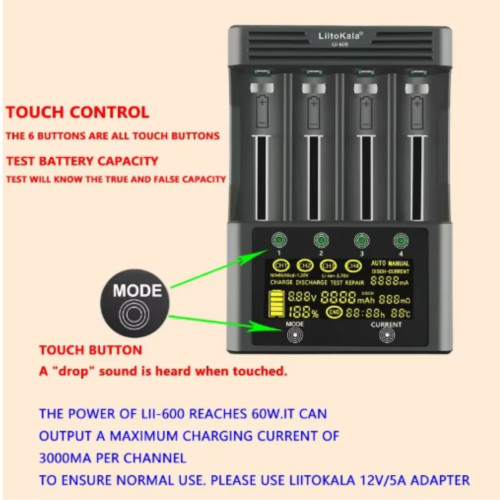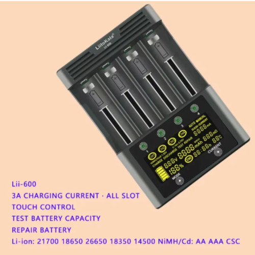 LiitoKala Lii-600 — універсальний зарядний пристрій для акумуляторів, створений для щоденного використання з літій-іонними 3,7 В та NiMH/NiCd 1,2 В елементами. Це зручна зарядка для li-ion і практичний зарядний для ni-mh aa aaa, що поєднує безпеку, тестування та наочний контроль параметрів.